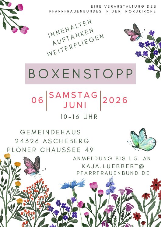 Innehalten - Auftanken - Weiterfliegen Boxenstopp Anmeldung erbeten bis 6.5. an Kaja Lübbert kaja.lübbert@pfarrfrauenbund.de